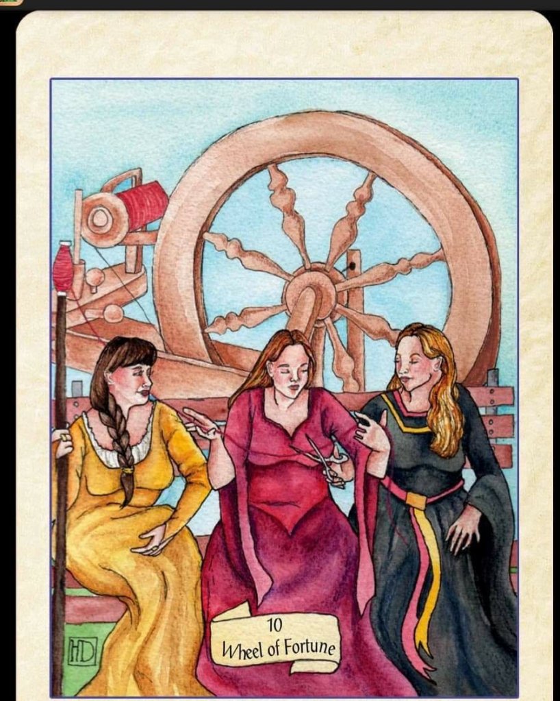 Today’s message is from the Fellowship of the Fool Tarot by Helena Domenic. Wheel of Fortune. Things are changing for the better now. Can you feel it? Maybe not yet but there is a shift coming. Work gets easier. Family problems blow over. Money starts coming in again. You are soon going to receive the answer to a prayer in the form of help from a friend. Whether you ask out loud or not, someone around you has what you need: an opportunity to give you a job, help finding a place to live, a connection to a doctor, lawyer, or counselor who is going to change your life. Lean on your tribe now. That’s what they are there for. When you start to feel like yourself again, look around and think about how you can give back. If you are lucky enough to be the answer to someone else’s prayer today, you might not even realize how much a simple gesture means. That’s how you stay humble 🙂 We are all in this together. Have a great day, everyone.