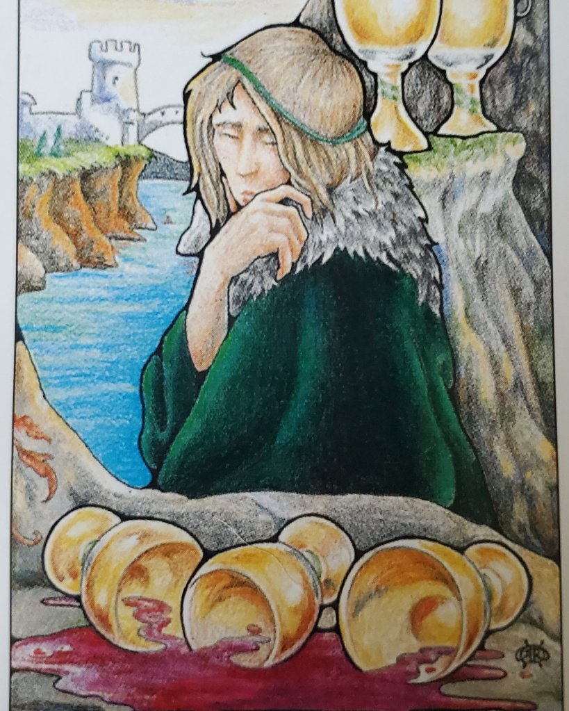 Today’s message is from the Hanson Roberts Tarot. 5 of Cups. Well, it has already happened. Six days to go and these words have just been uttered in my house. “I hate Christmas!” It always makes me sad, but it seems unavoidable at this time of the year. The holidays are stressful for sure.