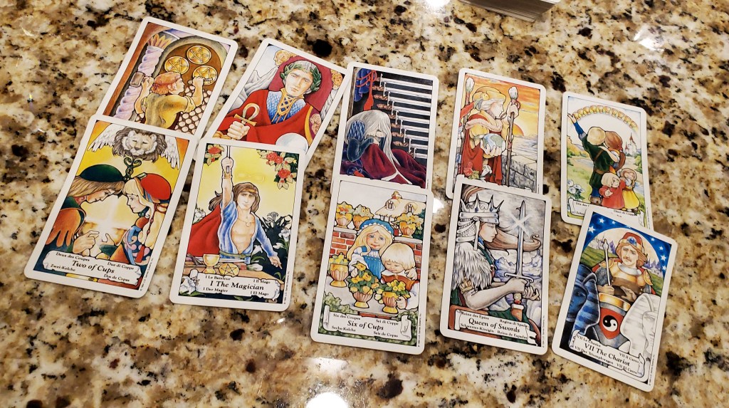 Here is a reading I did for a friend yesterday. It foretells new work opportunities, the possibility of doing some public speaking, and the arrival of a new romantic partner. If you would like a forecast for the year ahead, I am doing ten card spreads for $25 and I will follow up with a text or e-mail highlighting the important events of your coming year. Please call or text me if you are interested: 339-216-0147.