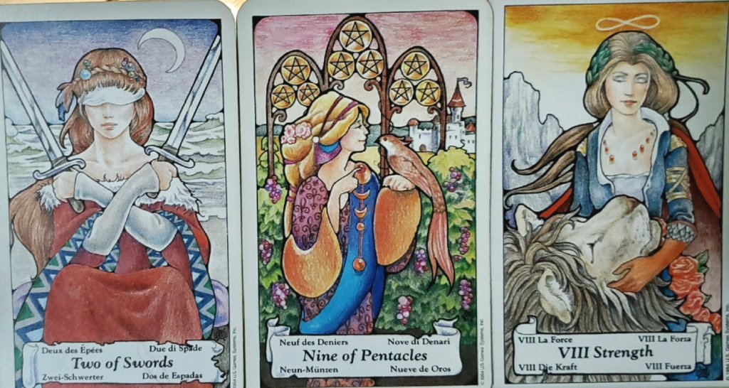 Today’s message is from the Hanson Roberts Tarot. Two of Swords, 9 of Pentacles, Strength. You may be at a crossroads now. You need to make an important decision but you don’t have the first clue which way to go. Maybe you have to choose between two relationships, new homes, or job offers; your next steps forward are likely to carry your life in a whole new direction. No wonder you’re worried about making a mistake. Give it a rest right now. Sit tight. Listen to good advice from a trusted friend or colleague, but don’t let someone else’s opinion sway you. In the end, this is your choice and you are the one who is going to have to live with it. Ignore anyone with a stake in the outcome who tries to bully you into going a certain way. Get out in nature if you can and turn the whole matter over to God. You are going to figure it out. Within the next two weeks, the fog lifts and you discover the answer. There is no need to rush this process. If someone or something is pressuring you … then just consider that path closed for you.