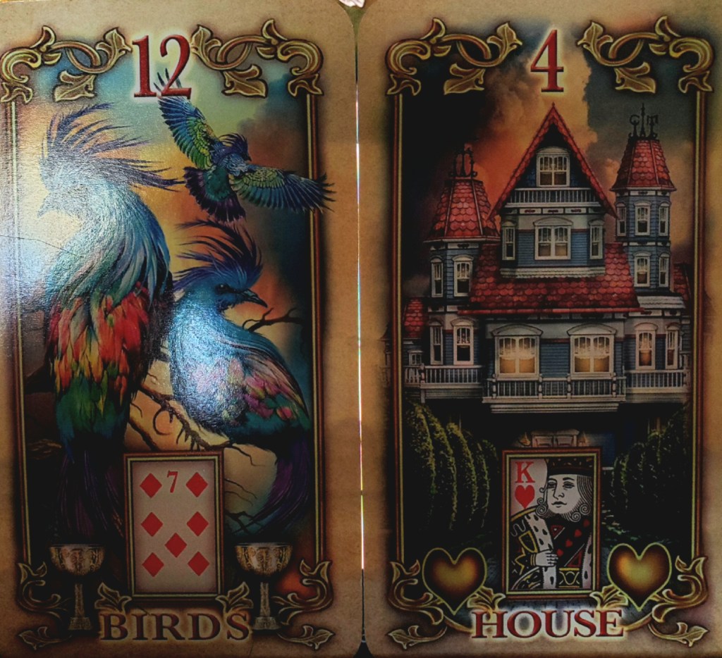 Today’s message is from the Lustrous Lenormand Cards by the great Ciro Marchetti. Birds + House. You are about to be invited to a party or a dinner that has the potential to change your life for the better. You might feel like a hermit right now; believe me, I know. The holidays are tough and it’s tempting to hide out by yourself with a book and a cat. That would be a mistake right now. If you are willing to put on pants and leave the house, a chance encounter is going to open new doors for you. There is the potential to meet a new love interest, connect with someone who is in a position to offer you a great job in your field, or get invaluable advice about starting your own business from an experienced entrepreneur. The key to the next chapter in your life might be found in the home of a friend over the holidays. You can do this. Screw up your courage, put on your favorite ugly Christmas sweater and show up. Since the birds also represent secrets being revealed, you can expect someone to confide in you. News of a birth or engagement is on its way. Your solitary book and cup of tea will still be waiting for you when you get home :). God bless you and have a great day –