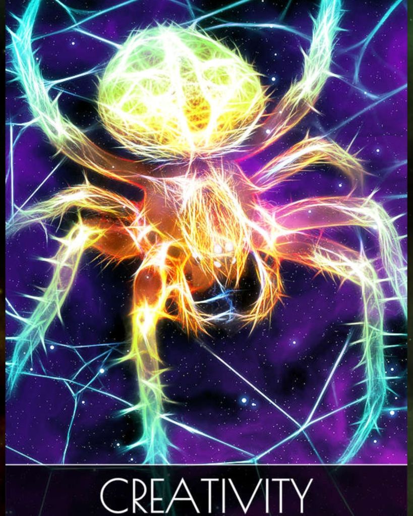 Today’s message is from the Animal Spirit Oracle by Frederic Calendini. Creativity. Thsi is the second time this week that creativity has shown up in the card of the day, remember? We saw the artist the other day. If you have recently started a creative project, the Spider is here to encourage you to keep going; if not, it’s time to get started. Try it. What do you have to lose? Go to Dollar Tree and get yourself some inexpensive watercolors or a journal and a cute pen. Start writing down your thoughts, ideas, maybe some memories from when you were a kid. Paint. Sketch. Take pictures. Jot down ideas for a stand up routine. There is an artist inside you who wants to come out to play.